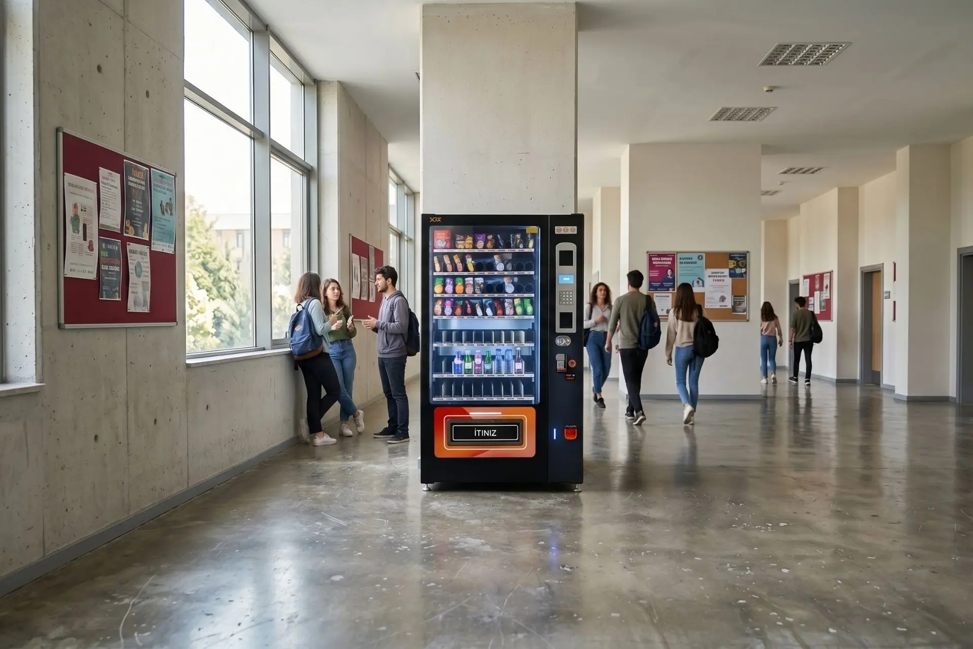 Öğrenci yoğunluğuna dayanıklı, 7/24 kesintisiz çalışan ve temassız ödeme destekli otomat çözümleriyle kampüs yaşamını kolaylaştırıyoruz.